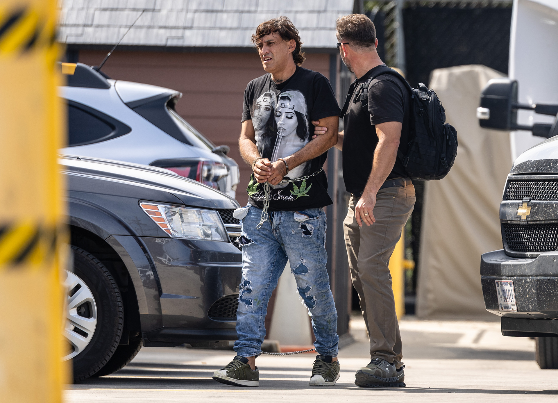 Hope Center business partner Arcelia Gonzales brings donated groceries to a Harvey, Illinois community member who has been impacted by Immigrations and Customs Enforcement activity and the SNAP shut down, on Tuesday, Nov. 4, 2025. Hope Center advocates are currently delivering groceries to those struggling due to SNAP being cut and people that are scared to leave their house out of fear of Immigrations and Customs Enforcement.